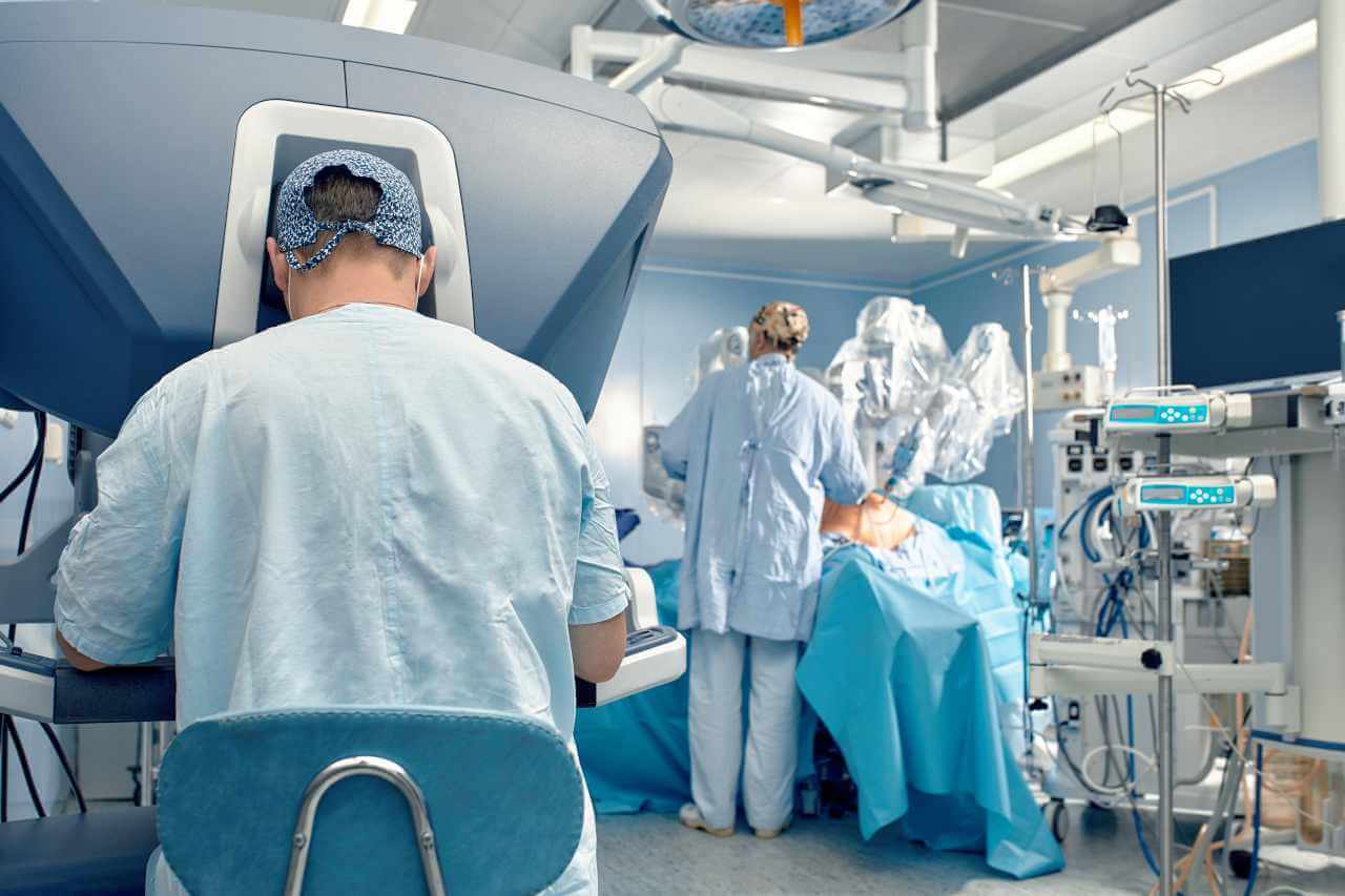 Специалисты отделения также успешно оперируют пациентов с раком желудка с помощью роботизированной техники da Vinci. Во время такой операции все хирургические манипуляции выполняются руками-манипуляторами роботизированной системы, а ход хирургического вмешательства контролирует подготовленный хирург. Врач находится за консолью управления роботизированной системы и дает ей команды, которые она выполняет с безупречной точностью. В ходе роботизированной операции хирург также видит операционное поле в многократном увеличении на мониторе. Размер рабочих поверхностей рук-манипуляторов робота da Vinci составляет всего несколько миллиметров, поэтому они легко проникают в труднодоступные места брюшной полости. Кроме того, роботизированная система нивелирует естественную дрожь человеческой руки и масштабирует ее движения, что способствует высокой точности хирургических манипуляций. Таким образом, операции с использованием роботизированной техники da Vinci отличаются малой травматичностью, а эффективность такого хирургического лечения находится на высоком уровне.